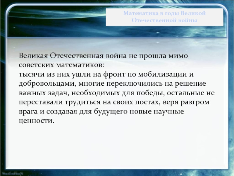 Математика в годы Великой Отечественной войны