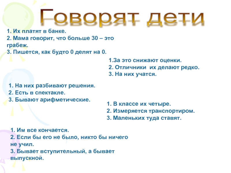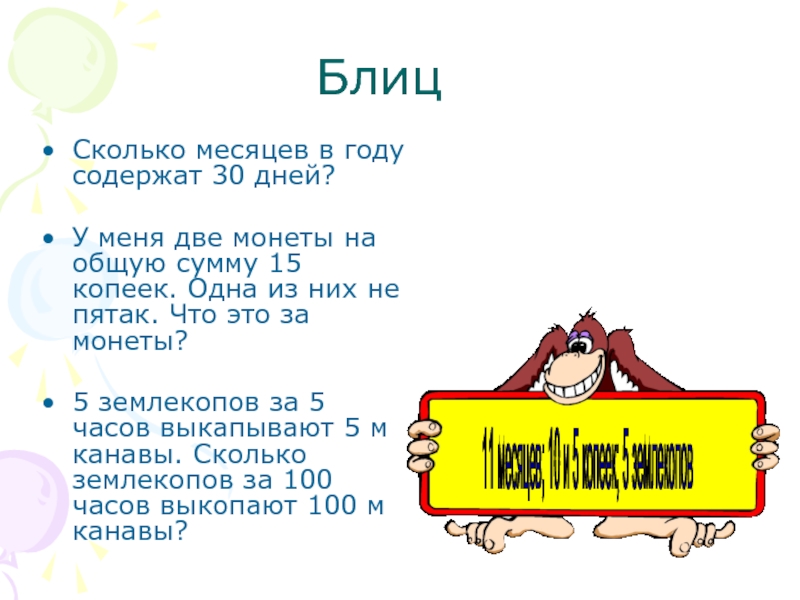 11 месяцев; 10 и 5 копеек; 5 землекопов