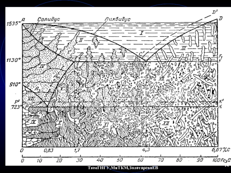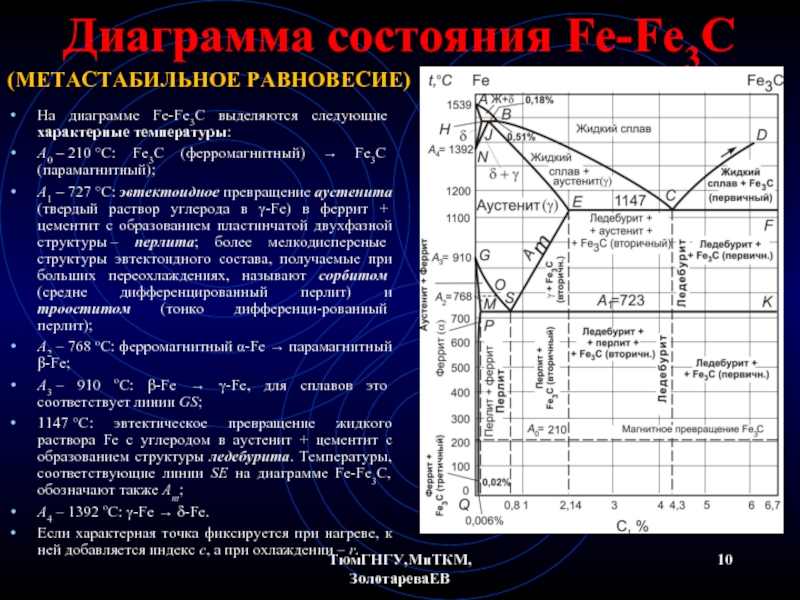 и чугуны. В основе такого разделения лежит структурная T-x-диаграмма состояния метастабильного равновесия системы Fe-Fe3C.