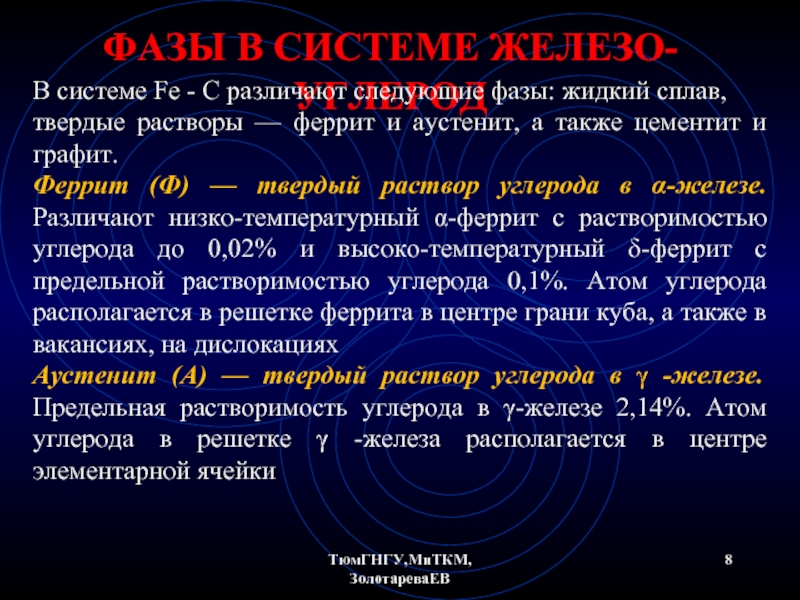 ФАЗЫ В СИСТЕМЕ ЖЕЛЕЗО-УГЛЕРОД