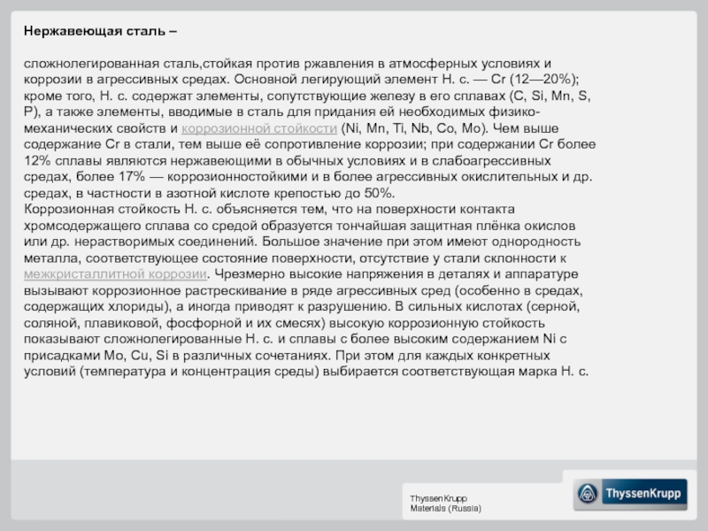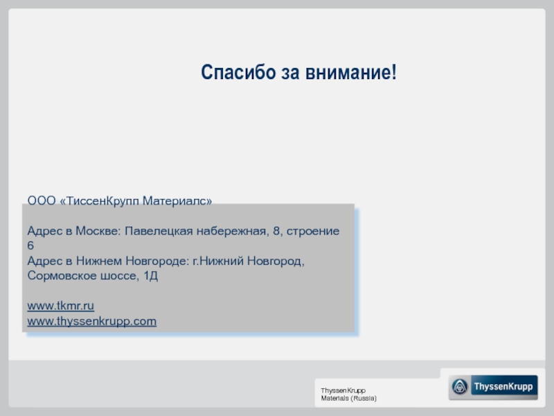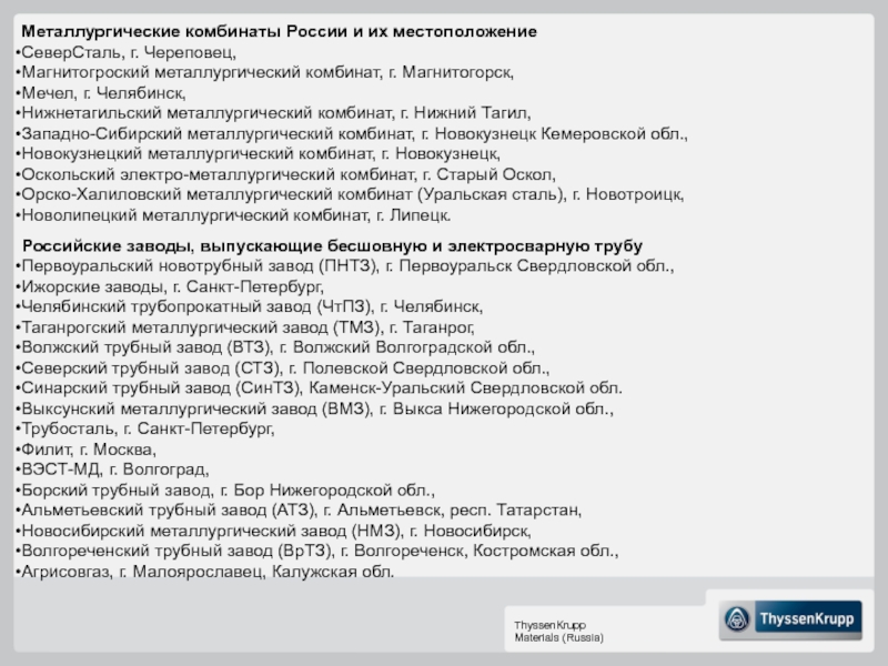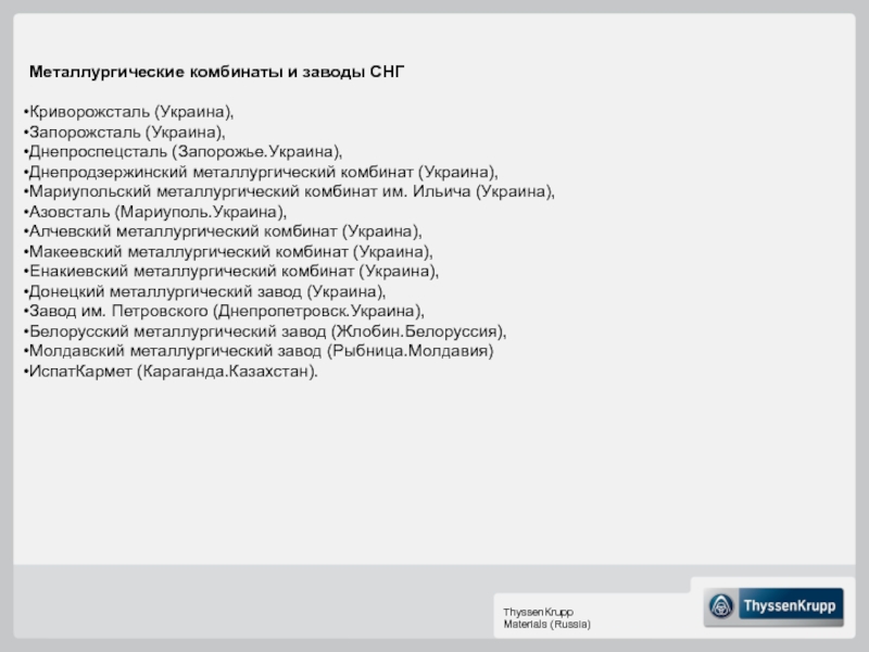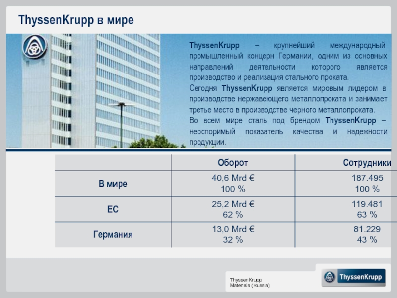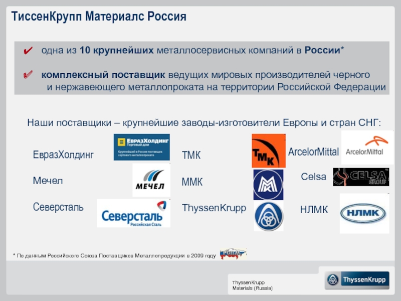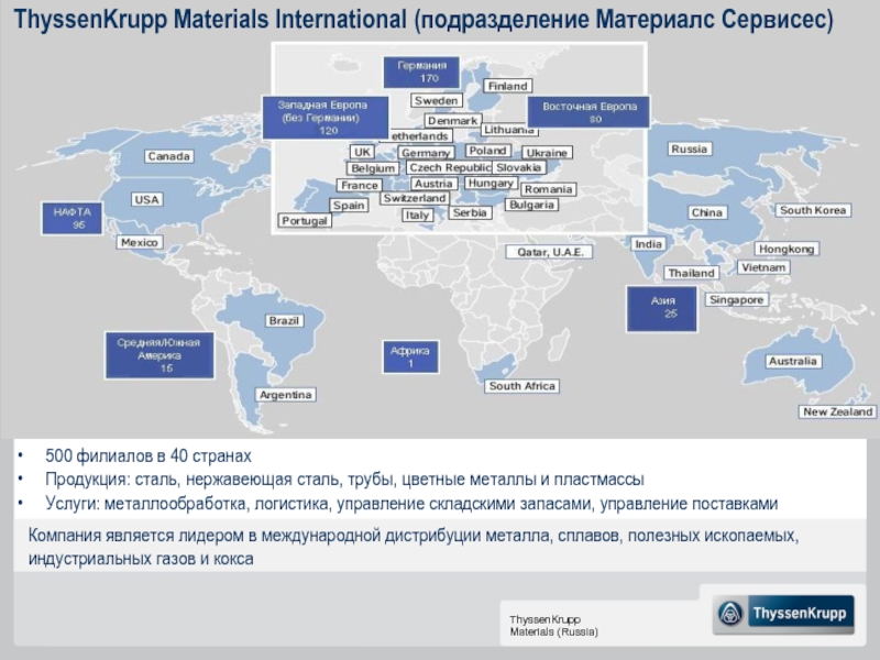Слайд 4ThyssenKrupp Materials International (подразделение Материалс Сервисес)