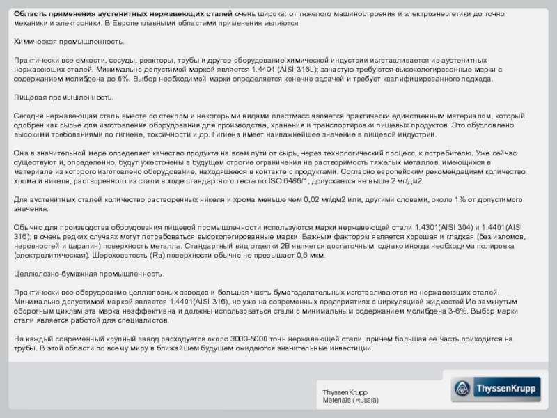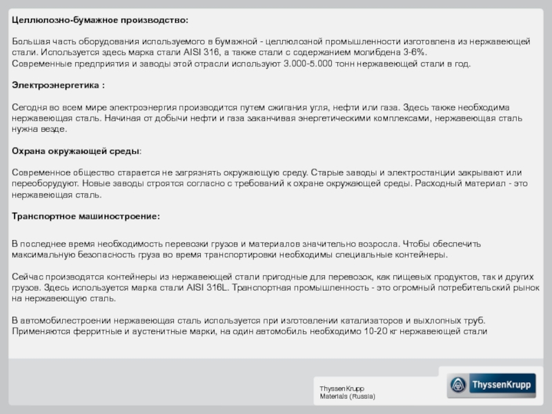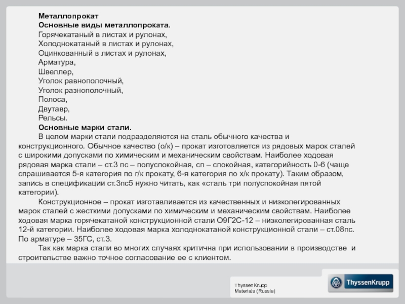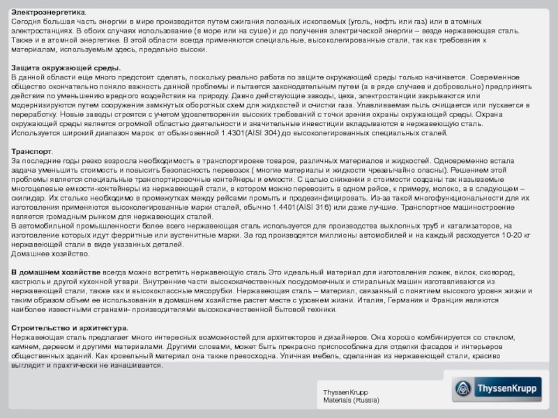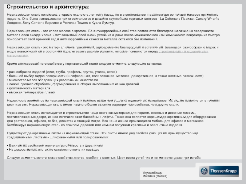 Во всем мире сталь под брендом ThyssenKrupp – неоспоримый показатель качества и надежности продукции.