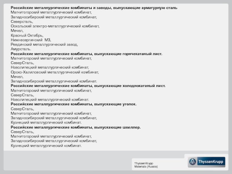 Слайд 9Российские металлургические комбинаты и заводы, выпускающие арматурную сталь