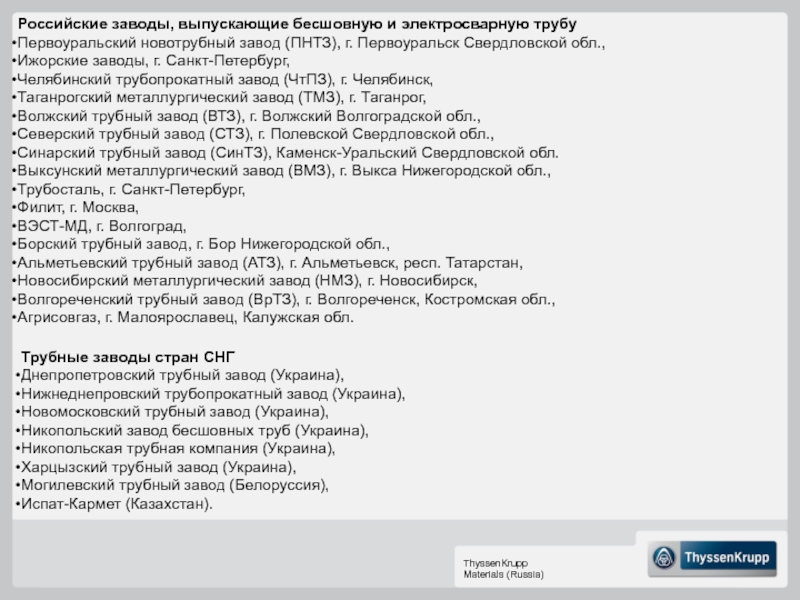 Слайд 7Российские заводы, выпускающие бесшовную и электросварную трубу