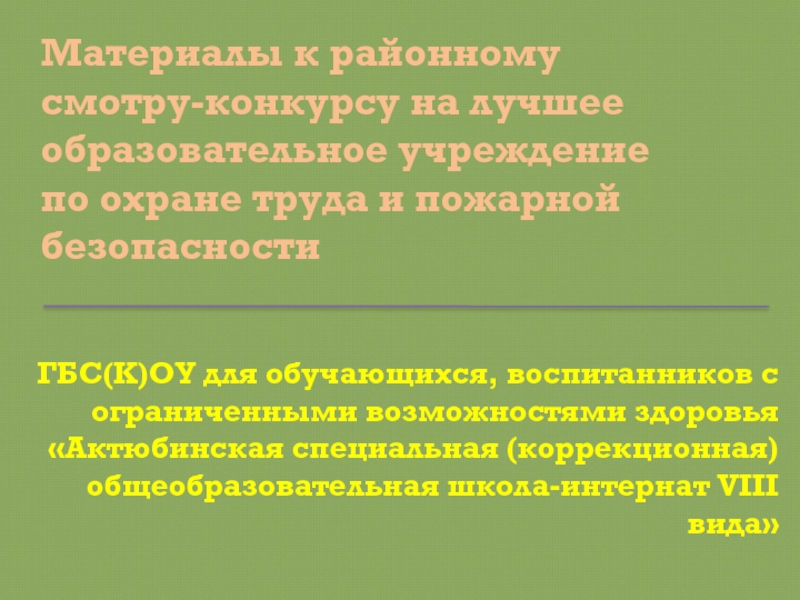 Слайд 1Материалы к районному смотру-конкурсу на лучшее образовательное учреждение по охране труда