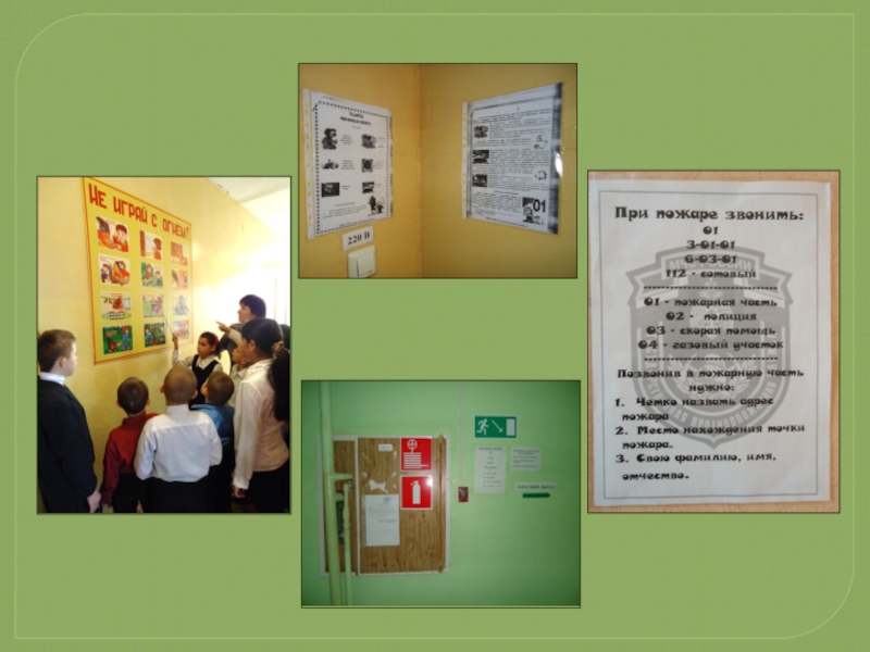 Слайд 14Стенды с плакатами по технике безопасности дают возможность руководителям школы доносить