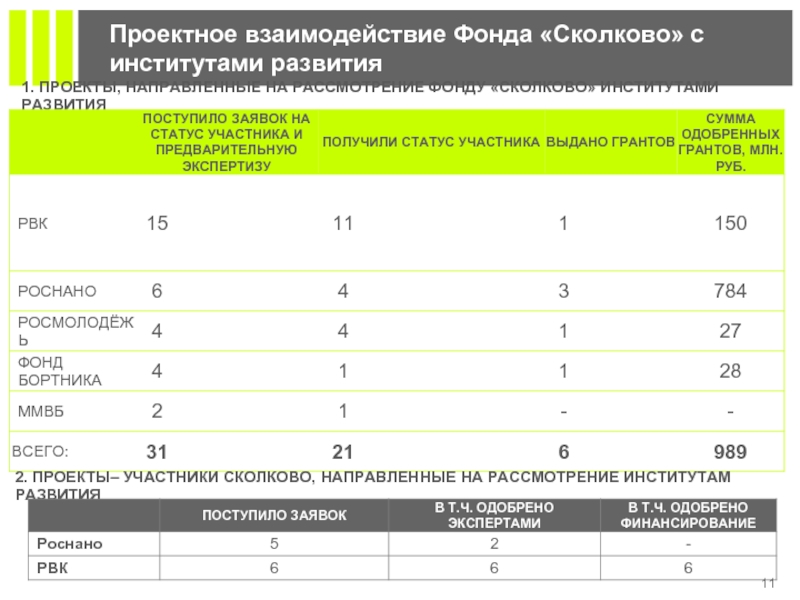 2. ПРОЕКТЫ– УЧАСТНИКИ СКОЛКОВО, НАПРАВЛЕННЫЕ НА РАССМОТРЕНИЕ ИНСТИТУТАМ РАЗВИТИЯ
