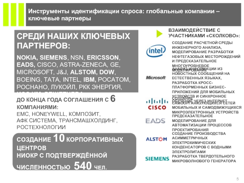 NOKIA, SIEMENS, NSN, ERICSSON, EADS, CISCO, ASTRA-ZENECA, GE, MICROSOFT, J&J, ALSTOM, DOW, BOEING, TATA, INTEL, IBM, РОСАТОМ, РОСНАНО, ЛУКОЙЛ, РКК ЭНЕРГИЯ, ИСС ИМ. РЕШЕТНЕВА