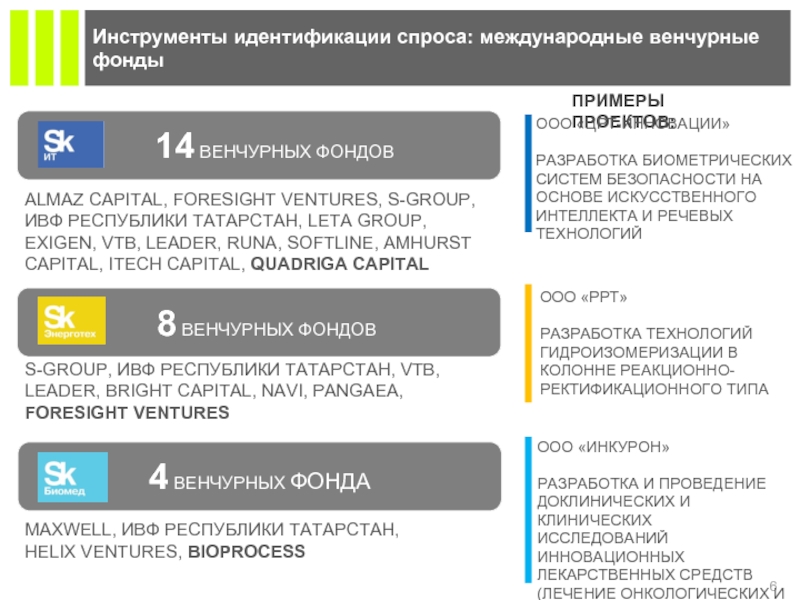 S-GROUP, ИВФ РЕСПУБЛИКИ ТАТАРСТАН, VTB, LEADER, BRIGHT CAPITAL, NAVI, PANGAEA, FORESIGHT VENTURES