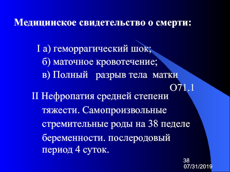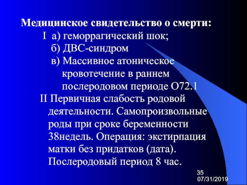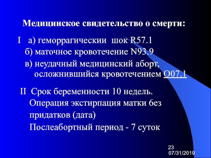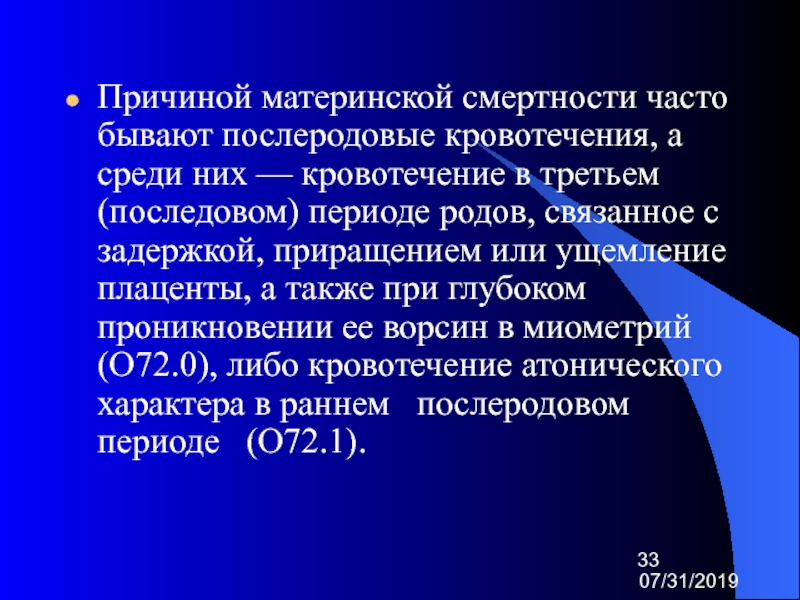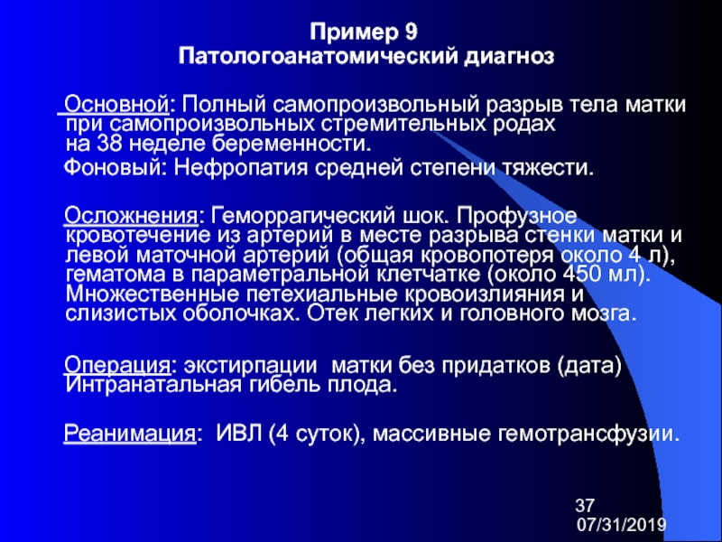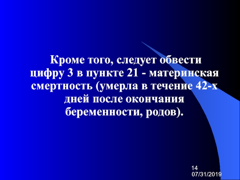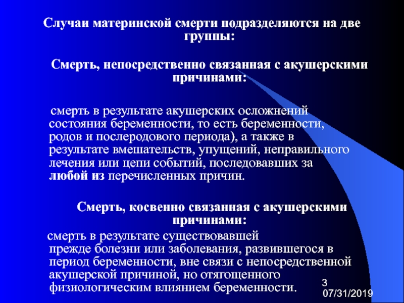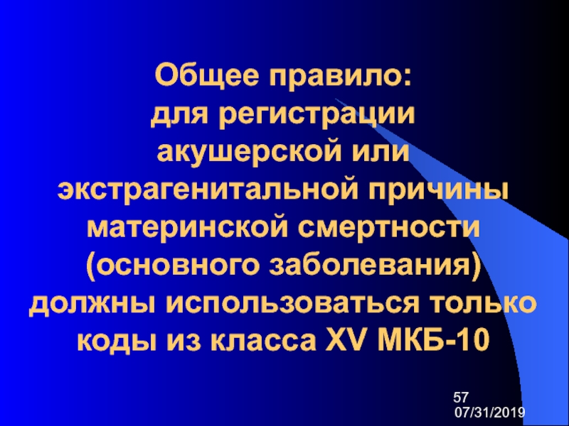 Для этих случаев материнской смертности используется иной принцип кодирования: выбирается формулировка