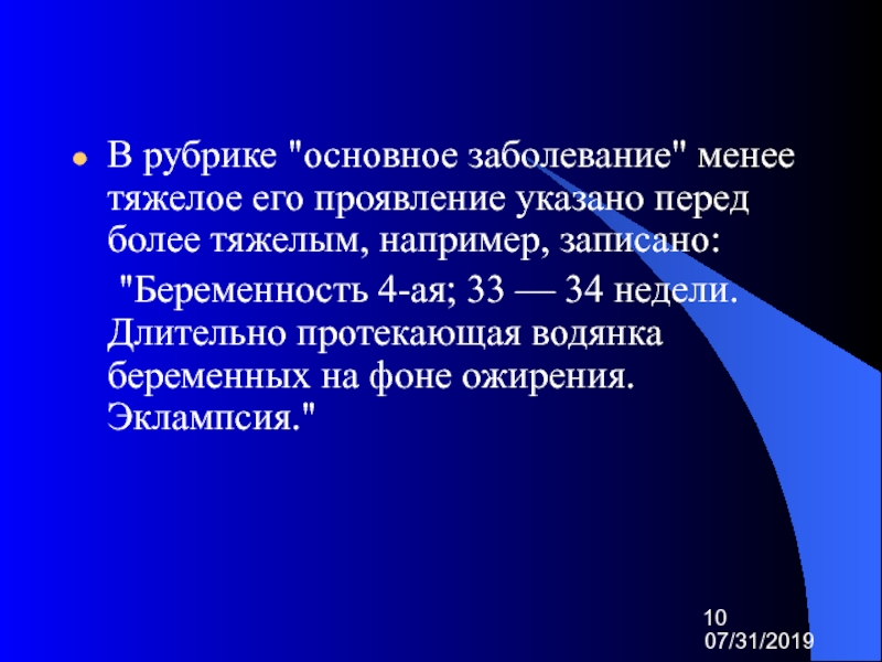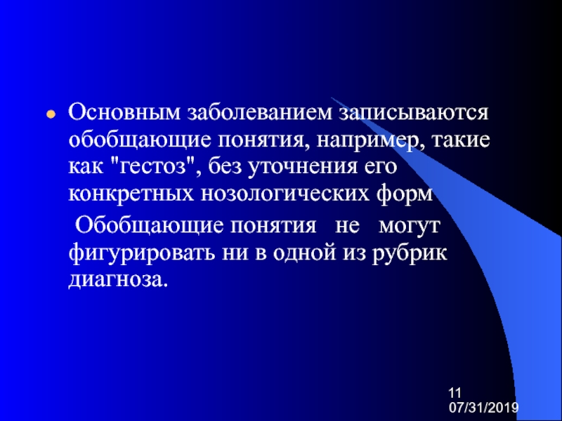 Основным заболеванием записываются обобщающие понятия, например, такие как "гестоз", без уточнения