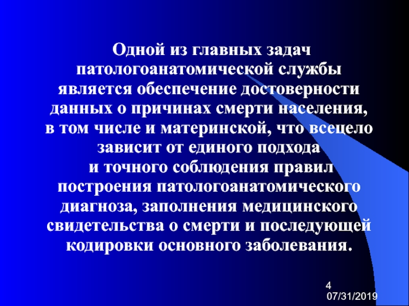Одной из главных задач патологоанатомической службы является обеспечение достоверности данных о