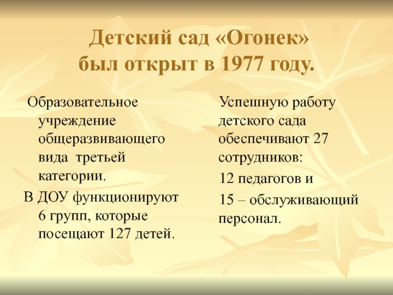 Успешную работу детского сада обеспечивают 27 сотрудников: