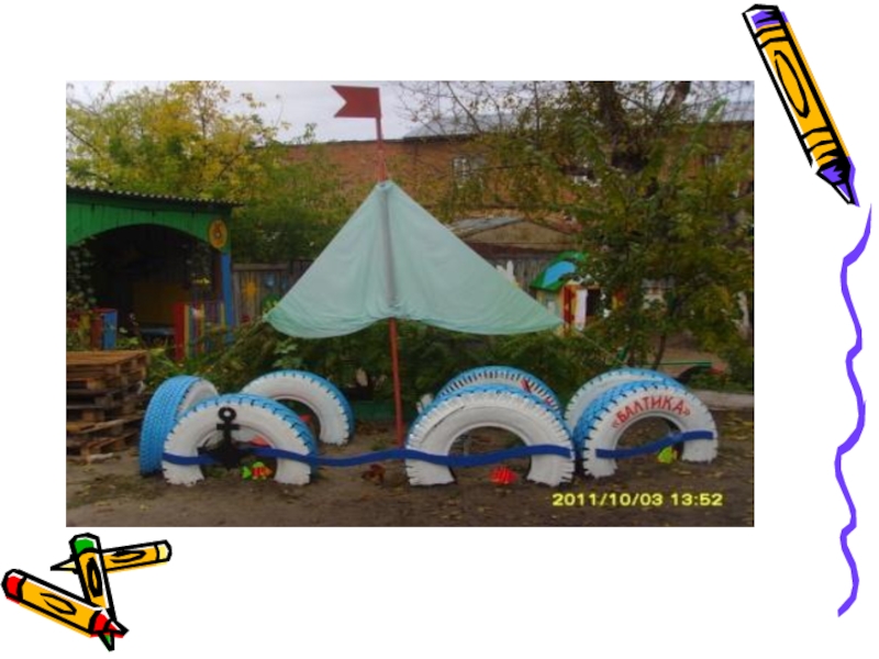 Слайд 18Развивающая среда на территории дошкольного учреждения: участки, тематические площадки, игровые центры