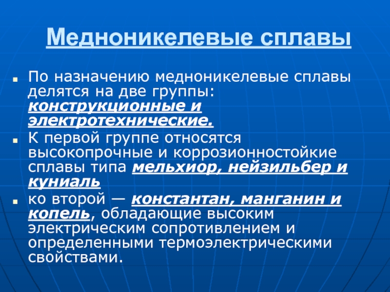 По назначению медноникелевые сплавы делятся на две группы: конструкционные и