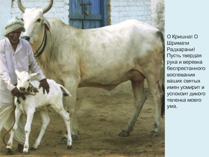 Слайд 4О Кришна! О Шримати Радхарани! Пусть твердая рука и веревка беспрестанного