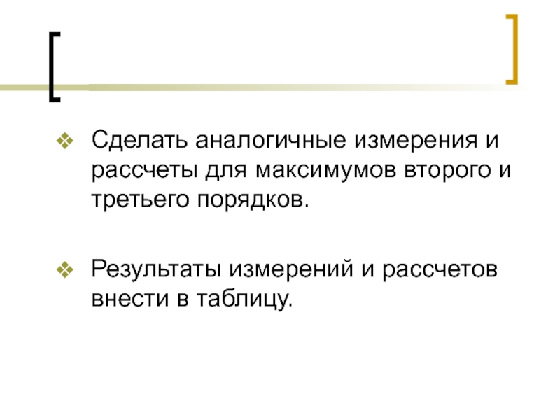 Сделать аналогичные измерения и рассчеты для максимумов второго и третьего порядков.