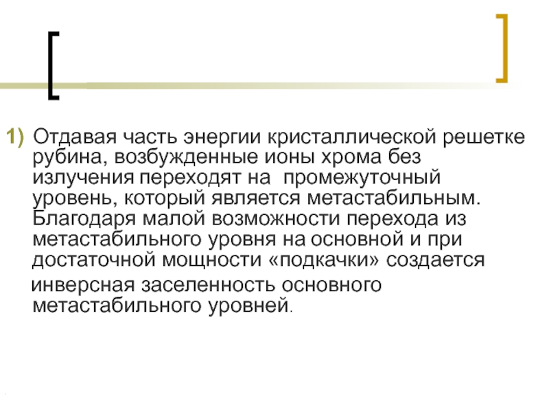 промежуточный уровень 2 вызывает появление фотонов, которые вызывают индуцированное (принудительное) когерентное излучение с длинами волн