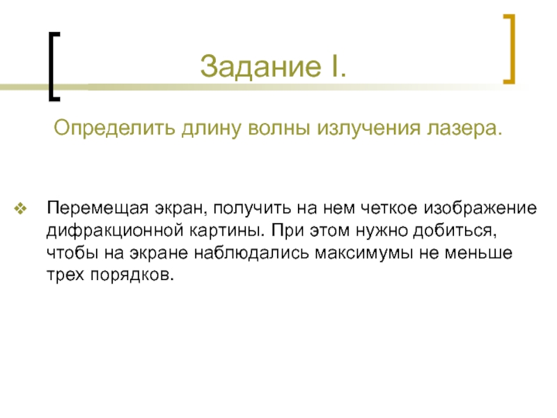 изображение дифракционной картины. При этом нужно добиться, чтобы на экране наблюдались максимумы не меньше трех порядков.