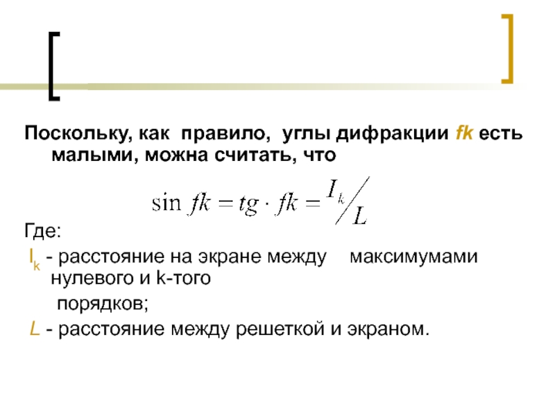 Поскольку, как правило, углы дифракции fk есть малыми, можна считать, что
