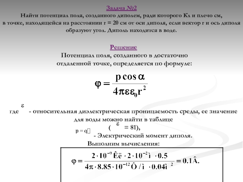 r2 - r1 = lcos, где - угол между векторами р i r2. Подставив эти выражения, получим: