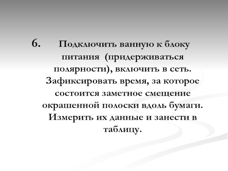 Зафиксировать время, за которое состоится заметное смещение окрашенной полоски вдоль бумаги. Измерить их данные и занести в таблицу.