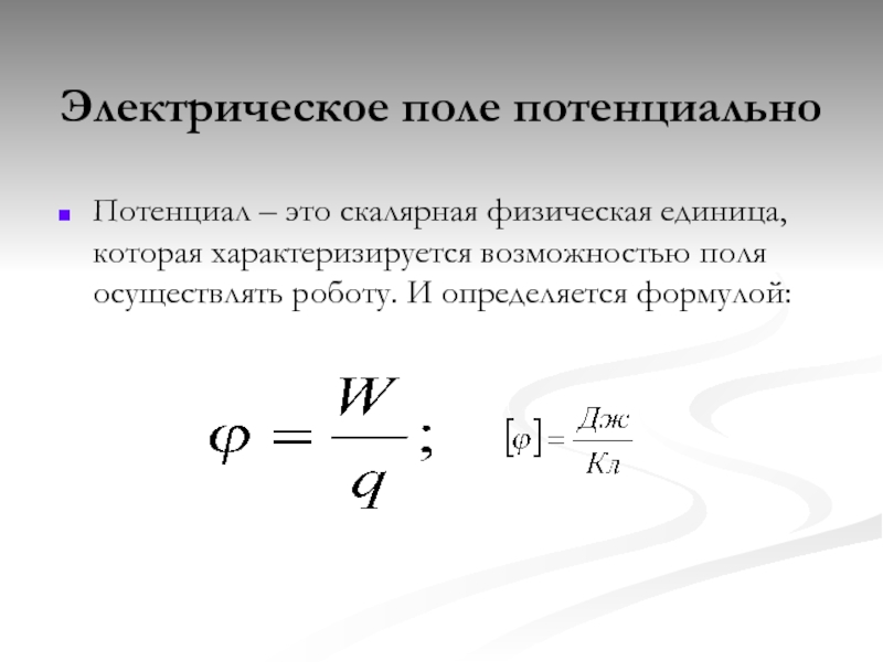 Потенциал – это скалярная физическая единица, которая характеризируется возможностью