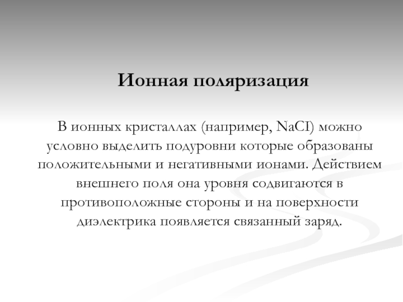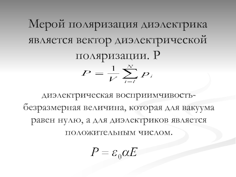 Слайд 19Мерой поляризация диэлектрика является вектор диэлектрической поляризации. Р