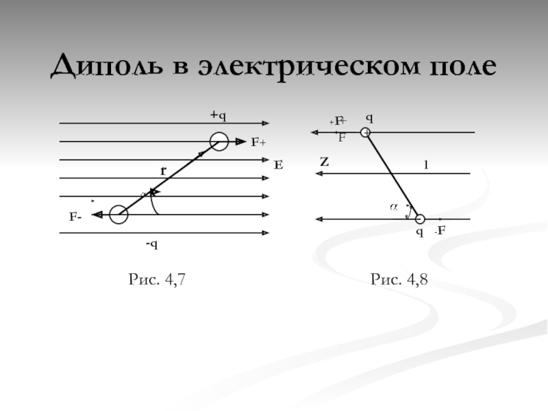 Слайд 15В неоднородном поле, где напряженность меняется от точки к точке, диполь