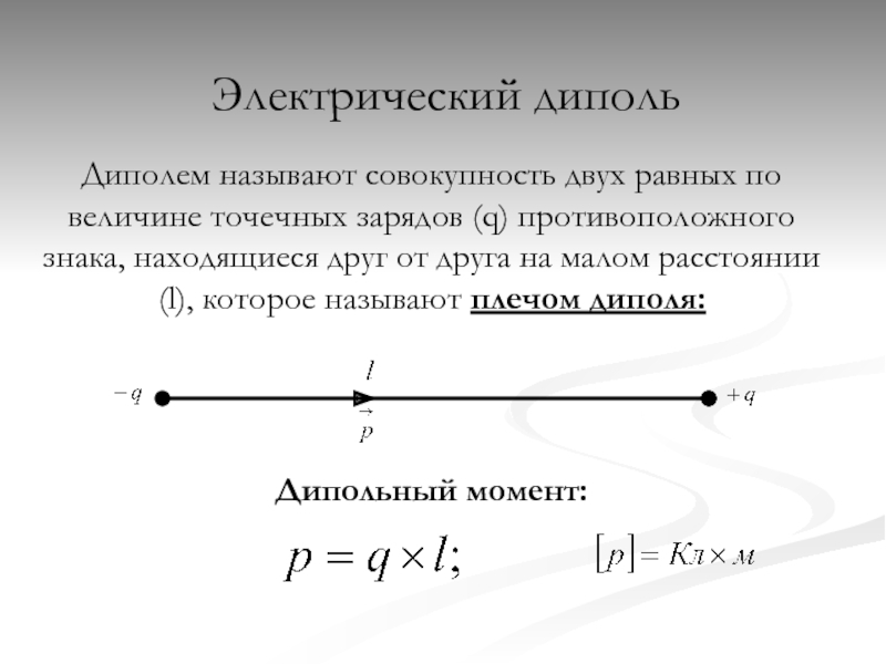 противоположного знака, находящиеся друг от друга на малом расстоянии (l), которое называют плечом диполя: