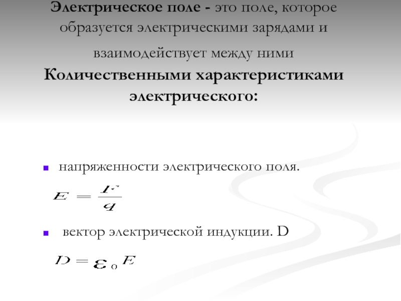 Слайд 6Электрическое поле - это поле, которое образуется электрическими зарядами и взаимодействует