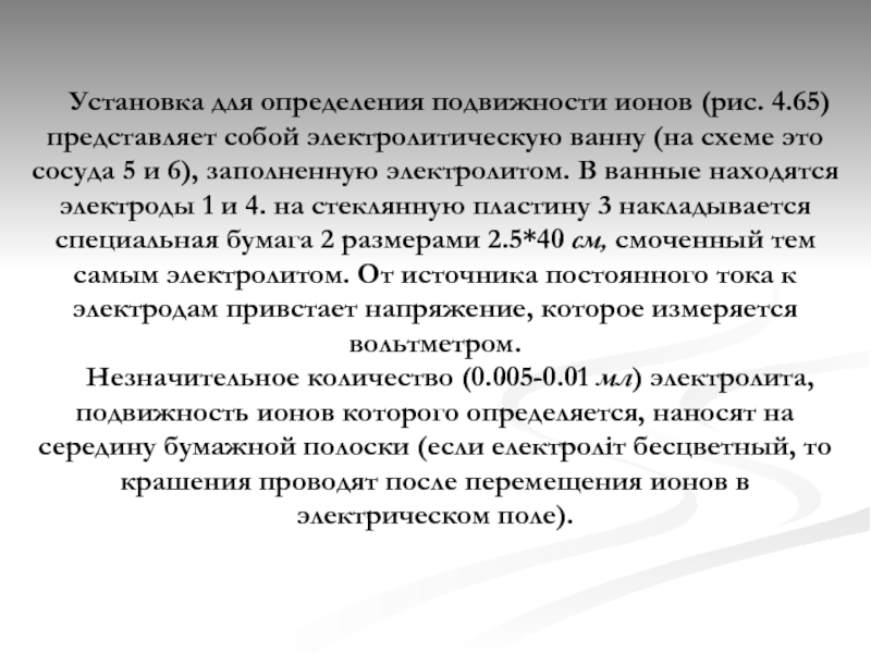 Слайд 165 Установка для определения подвижности ионов (рис. 4.65) представляет собой