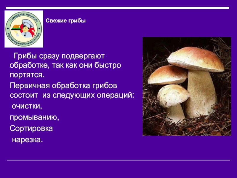 Грибы сразу подвергают обработке, так как они быстро портятся.