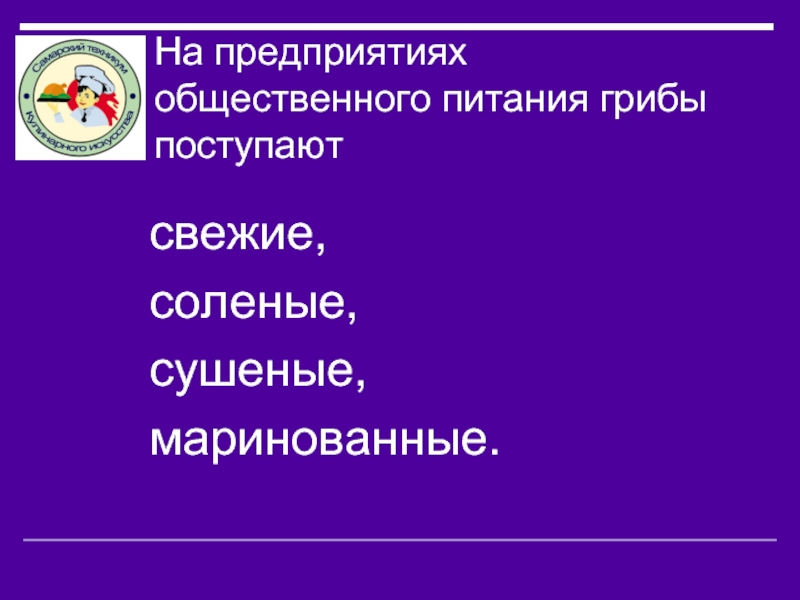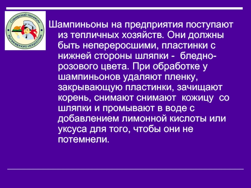 Слайд 13Шампиньоны на предприятия поступают из тепличных хозяйств. Они должны быть непереросшими,
