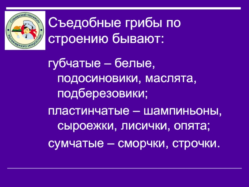 губчатые – белые, подосиновики, маслята, подберезовики;