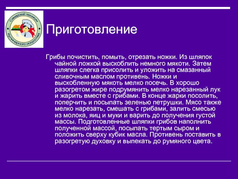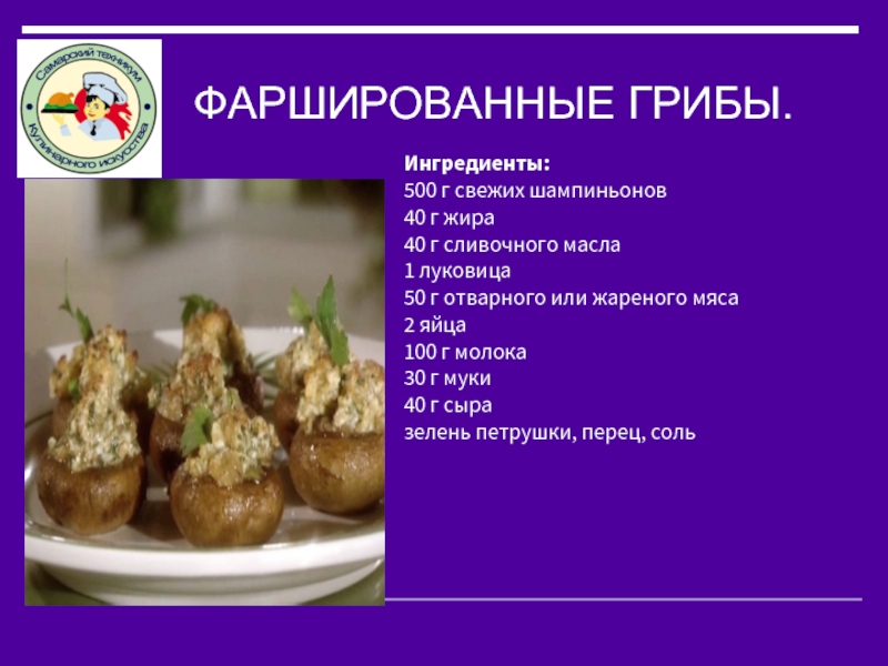 Слайд 17ФАРШИРОВАННЫЕ ГРИБЫ.