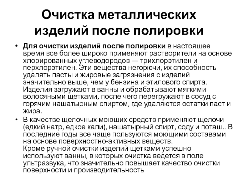 Слайд 13Очистка металлических изделий после полировки
