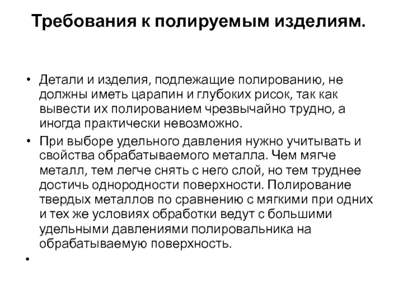 Слайд 3Требования к полируемым изделиям.