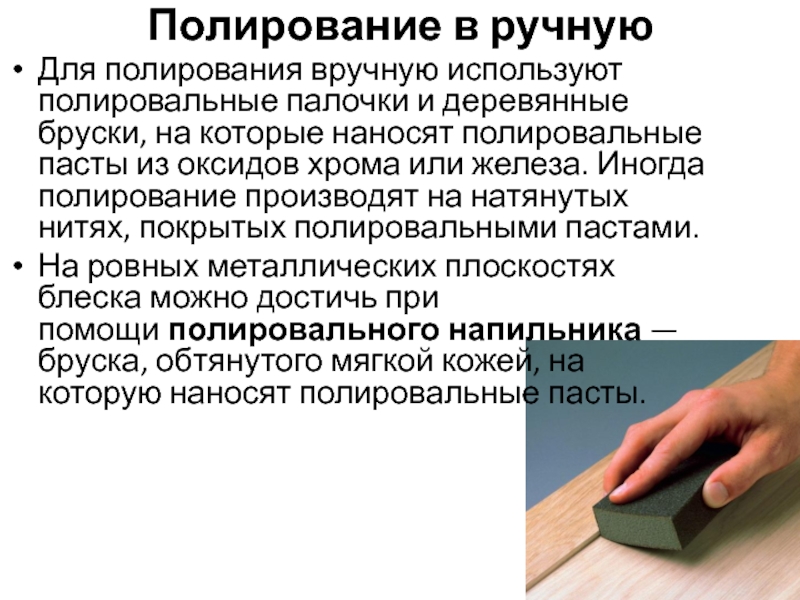 Слайд 8Полирование в ручную