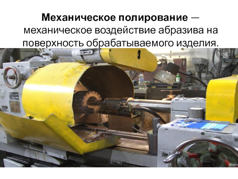 Слайд 2Механическое полирование — механическое воздействие абразива на поверхность обрабатываемого изделия.