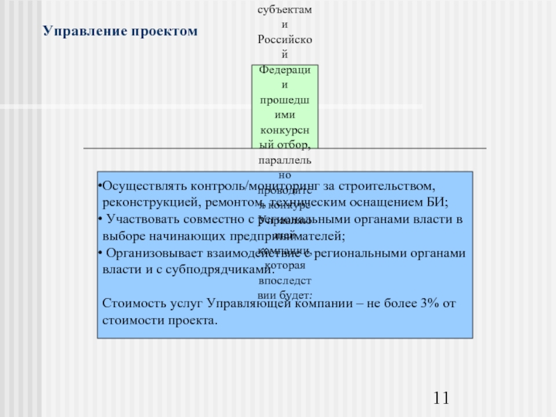На стадии оформления государственных заказов с субъектами Российской Федерации прошедшими конкурсный отбор, параллельно проводится конкурс Управляющей компании, которая впоследствии будет: