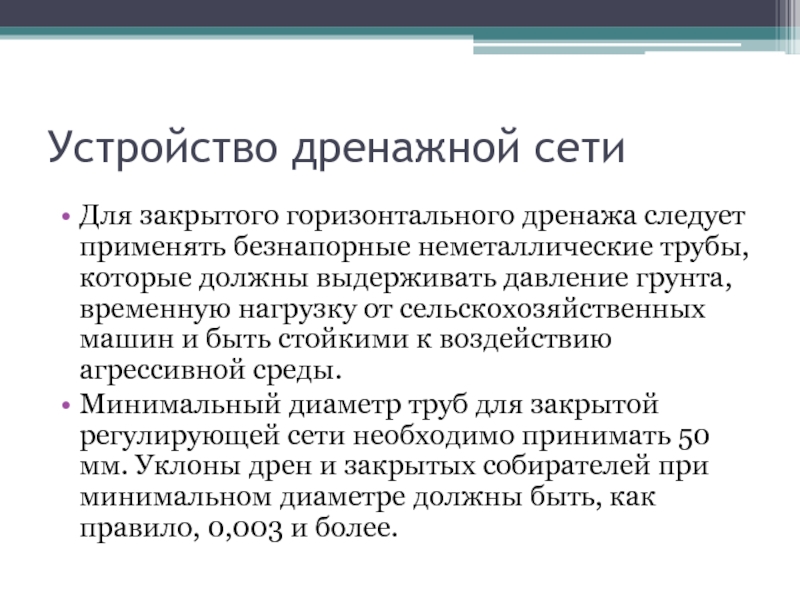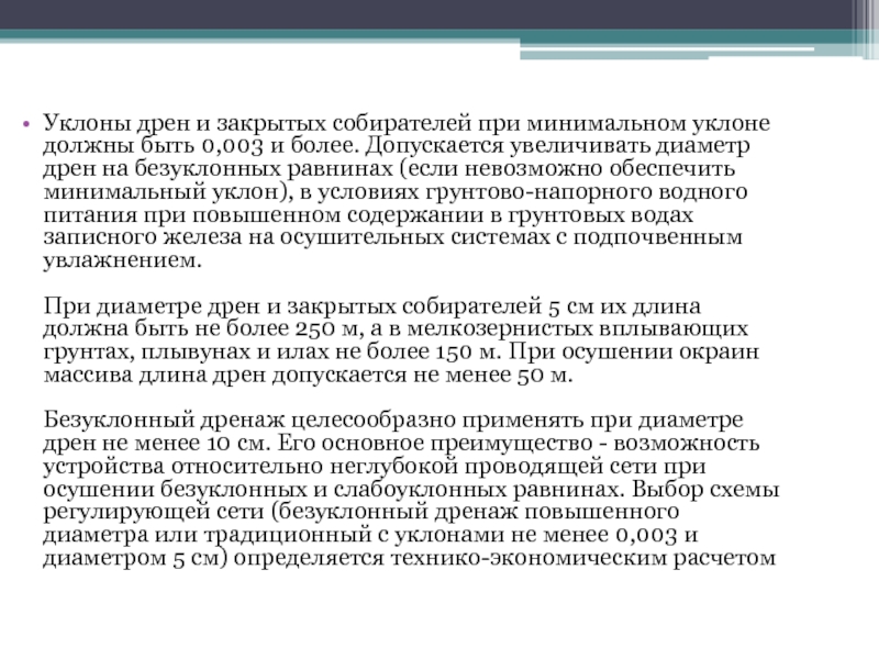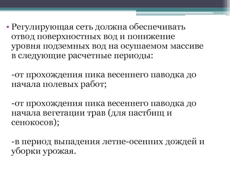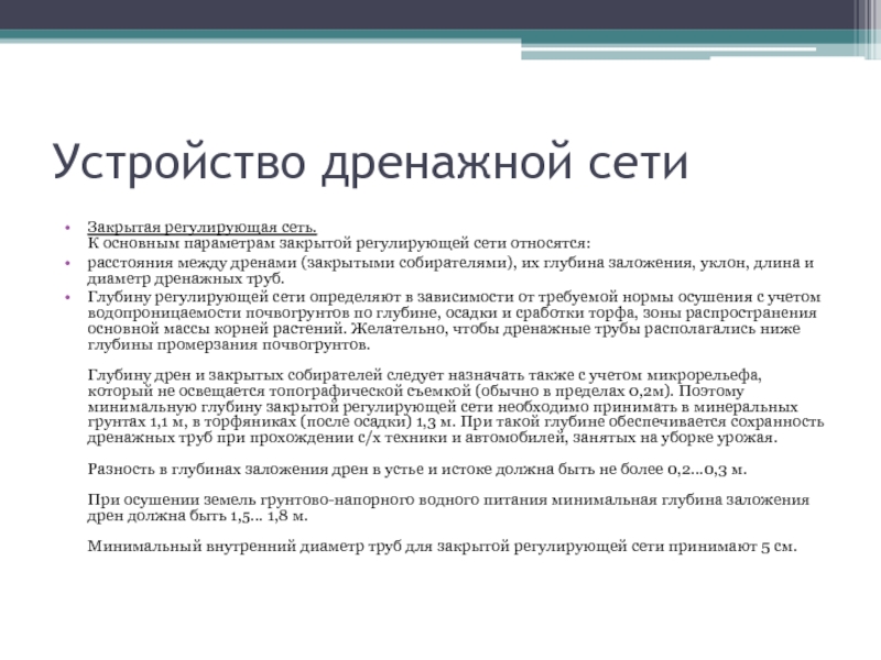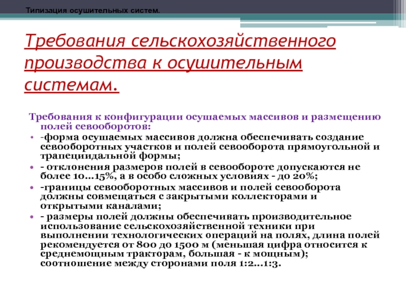 Слайд 9Требования сельскохозяйственного производства к осушительным системам.