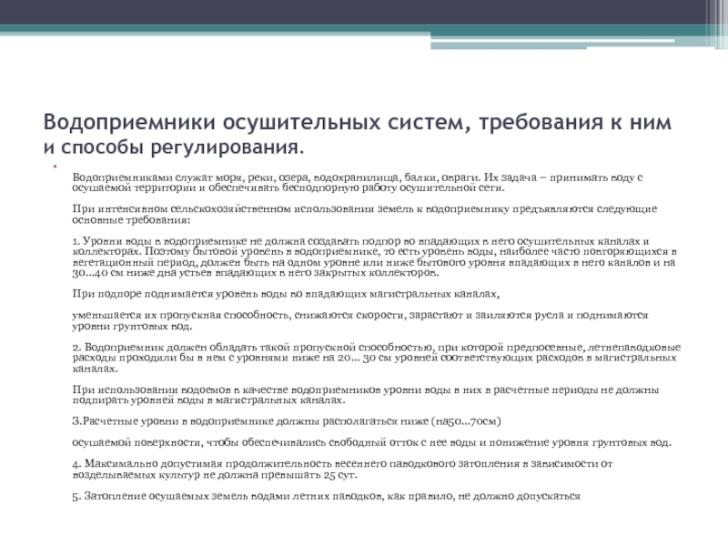 Слайд 41Водоприемники осушительных систем, требования к ним и способы регулирования.