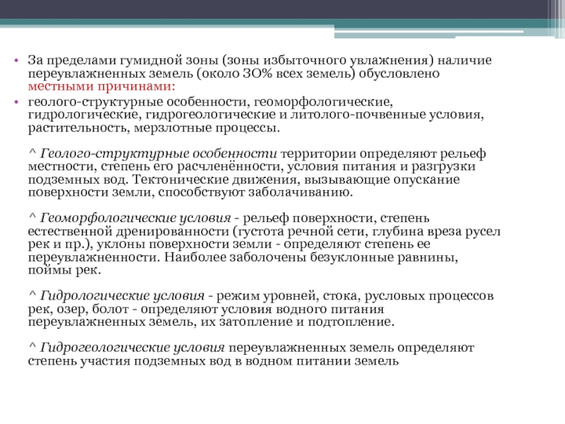Слайд 5За пределами гумидной зоны (зоны избыточного увлажнения) наличие переувлажненных земель (около
