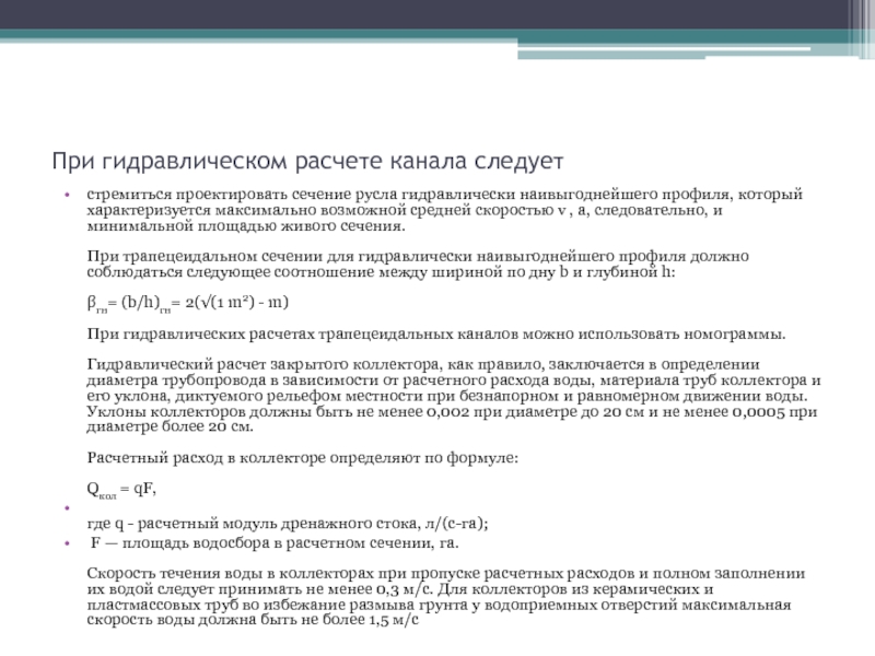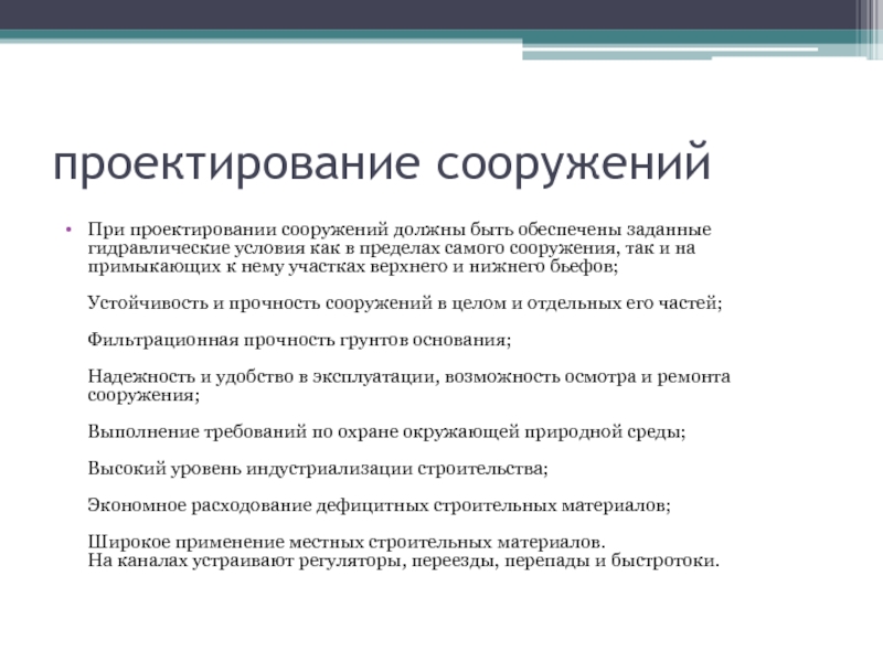 При проектировании сооружений должны быть обеспечены заданные гидравлические условия как