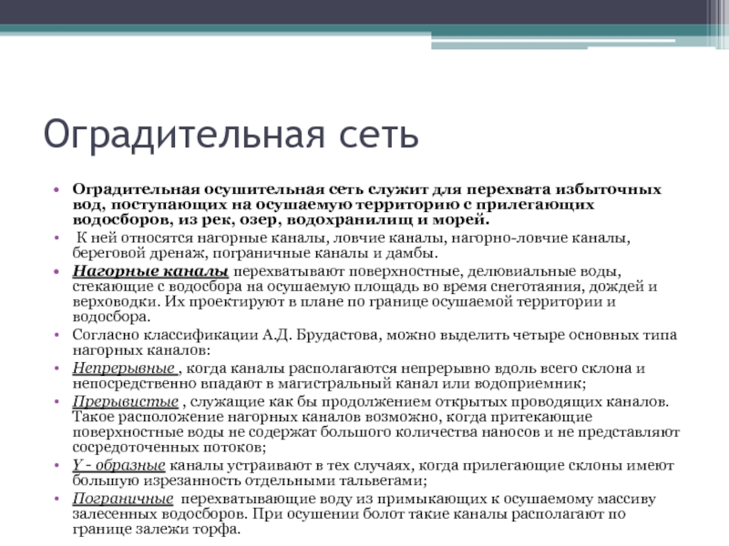 Оградительная осушительная сеть служит для перехвата избыточных вод, поступающих на