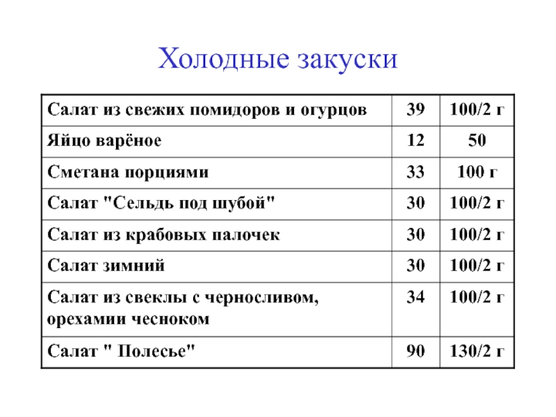Слайд 3Холодные закуски