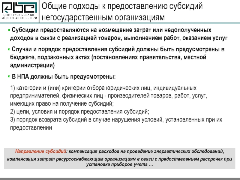 Направление субсидий: компенсация расходов на проведение энергетических обследований,