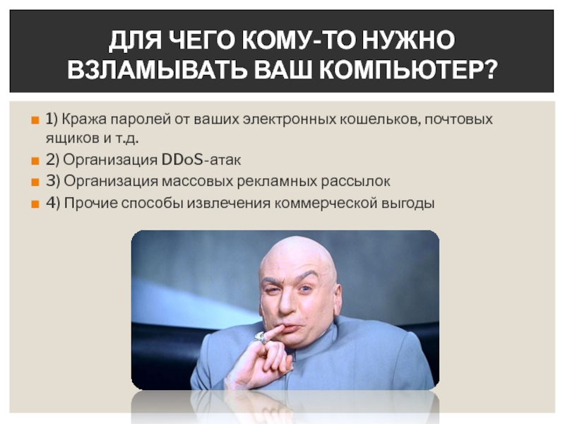 ДЛЯ ЧЕГО КОМУ-ТО НУЖНО ВЗЛАМЫВАТЬ ВАШ КОМПЬЮТЕР?
