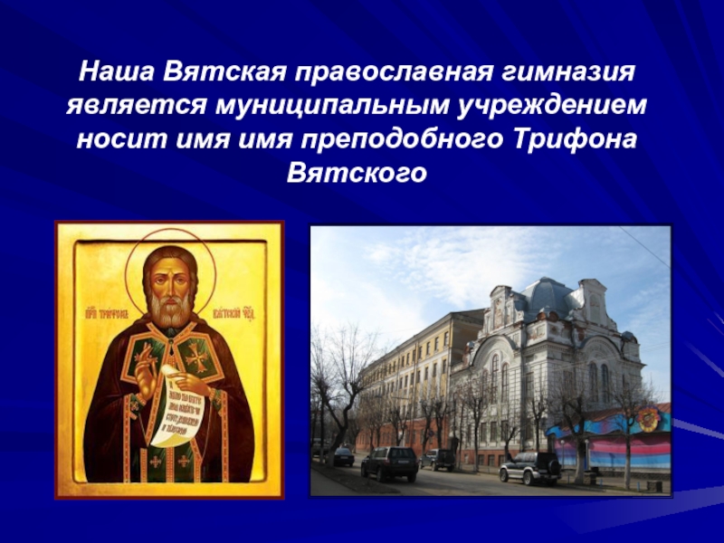 Слайд 7Наша Вятская православная гимназия является муниципальным учреждением носит имя имя преподобного